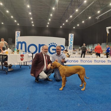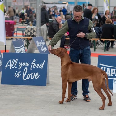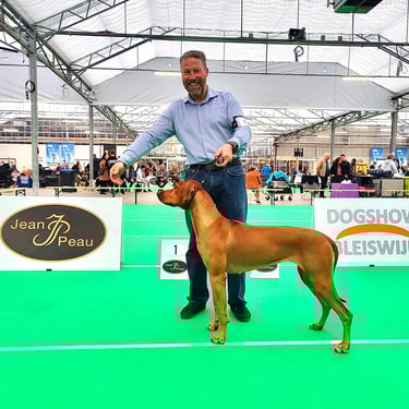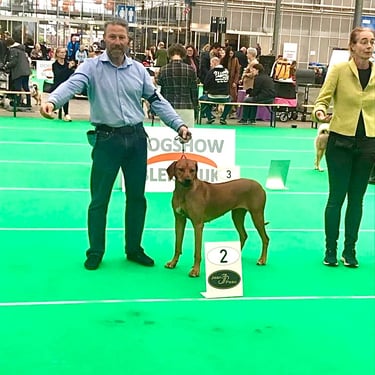 Het showen van onze honden heeft geen prioriteit voor ons maar is nodig voor de benodigde voorwaarden om te kunnen fokken......en het is natuurlijk heel leuk en gezellig op de show.